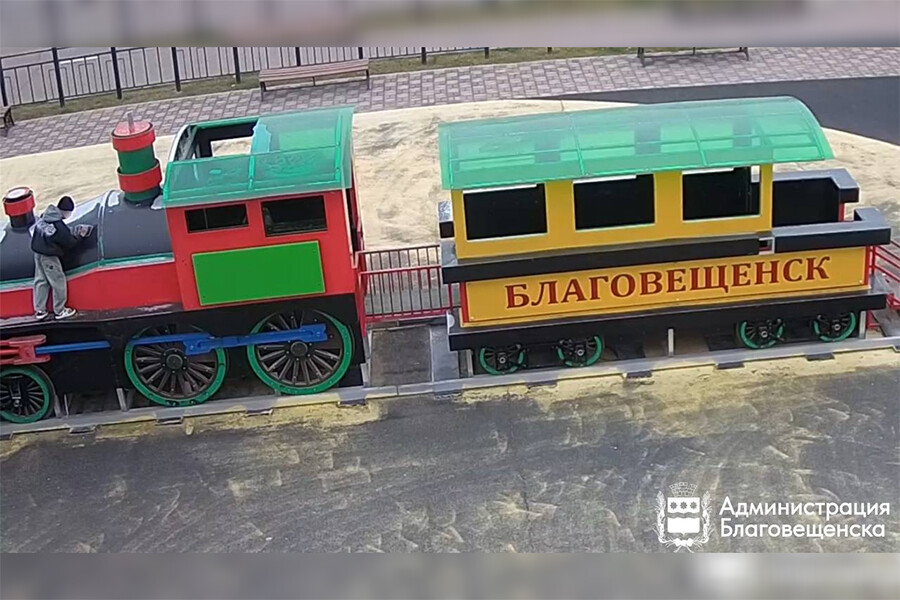На детской площадке на набережной Благовещенска паровозик стал жертвой детского «творчества». Юных вандалов сняла видеокамера системы «Безопасный город».