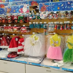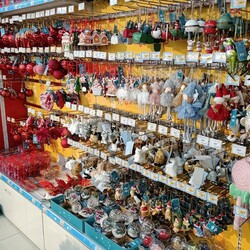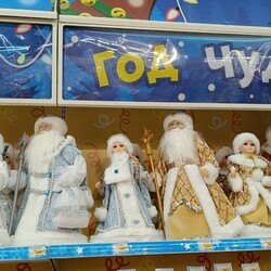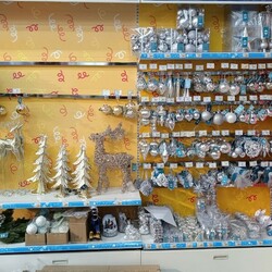 Магазины не отстают: прилавки завалены праздничными товарами. В одном крупном магазине полным ходом идет продажа новогодних игрушек и различных новогодних аксессуаров - от традиционных Дедов Морозов и Снегурочек до мишуры всех цветов и размеров, не говоря уже и шариках и разнообразных елочных игрушек.
