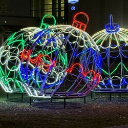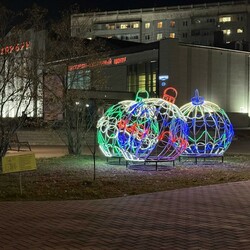 На улице Калинина, на кольцевой развязке, уже появилась новогодняя инсталляция в виде подсвечивающихся звезд. А возле бывшего кинотеатра «Харбин» установили огромные разноцветные новогодние шары.