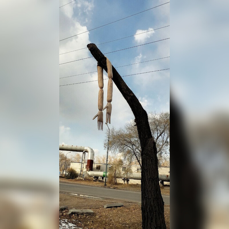 В Благовещенске появился новый арт-объект – безжизненные руки, свисающие со ствола такого же дерева. Оказалось, что автор этого творения – известный в городе художник Николай Рыбак, один из основателей творческой группы «Сигналы». Своему новому объекту он дал меткое название «Гипоксия».