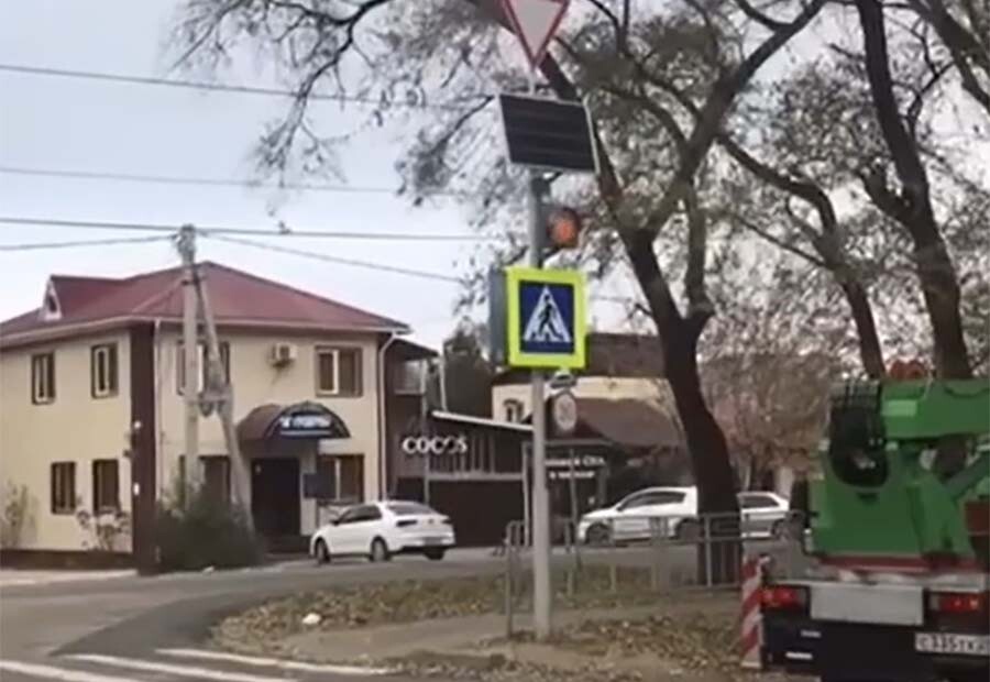 И вот теперь дорогу обезопасили не только пешеходным переходом и знаками, но и желтым мигающим светофором.