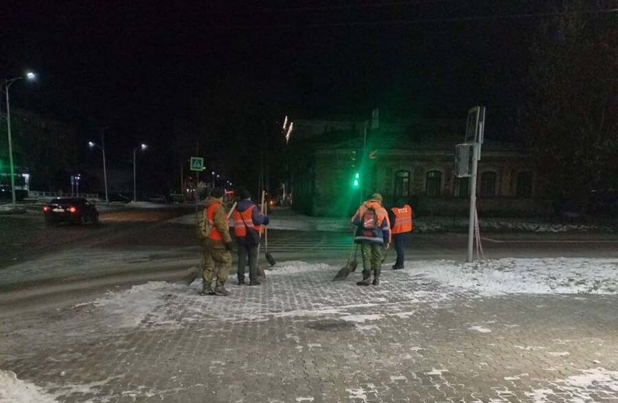 Ночью основные силы были брошены на обработку дорог — их посыпали противогололедными материалами и расчищали снежный накат. Коммунальщики работали по маршрутам 1, 2, 3, 4.