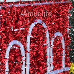 Высота конструкции составляет порядка 13 метров и выполнена из каркаса, диодных лент и мишуры.