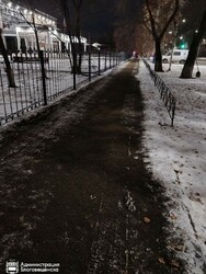 Всего для уборки города днём задействуют 14 единиц спецтехники и 25 рабочих, сообщили в мэрии Благовещенска.