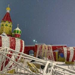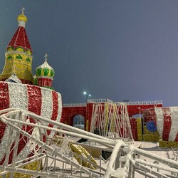 На набережной Благовещенска в районе «Трибуны Холл» продолжается подготовка к празднованию Нового года. Около собора Василия Блаженного начали возводить Кремль.