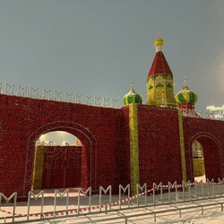 Работы на объекте еще ведутся. Уже почти установлена Спасская башня, а также стены знаменитого сооружения.