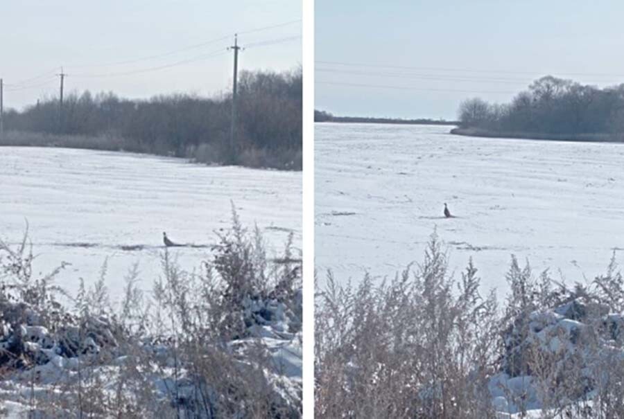 Первый снег усложнил фазанам поиски корма. Птицы потянулись на поля.