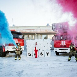Вместо традиционных хлопушек или торта с цветной начинкой главным атрибутом праздника стали переносные огнетушители, заряженные специальным цветным порошком. Церемония раскрытия пола ребенка для семьи Куликовых стала настоящим праздником: перед 16-й пожарно-спасательной частью собрались коллеги, друзья, родные.