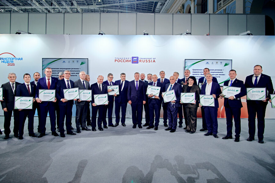 Вице-премьер России Марат Хуснуллин, вручая награду губернатору Василию Орлову, высоко оценил масштабную работу по строительству дорожных объектов, которая ведется в регионе.