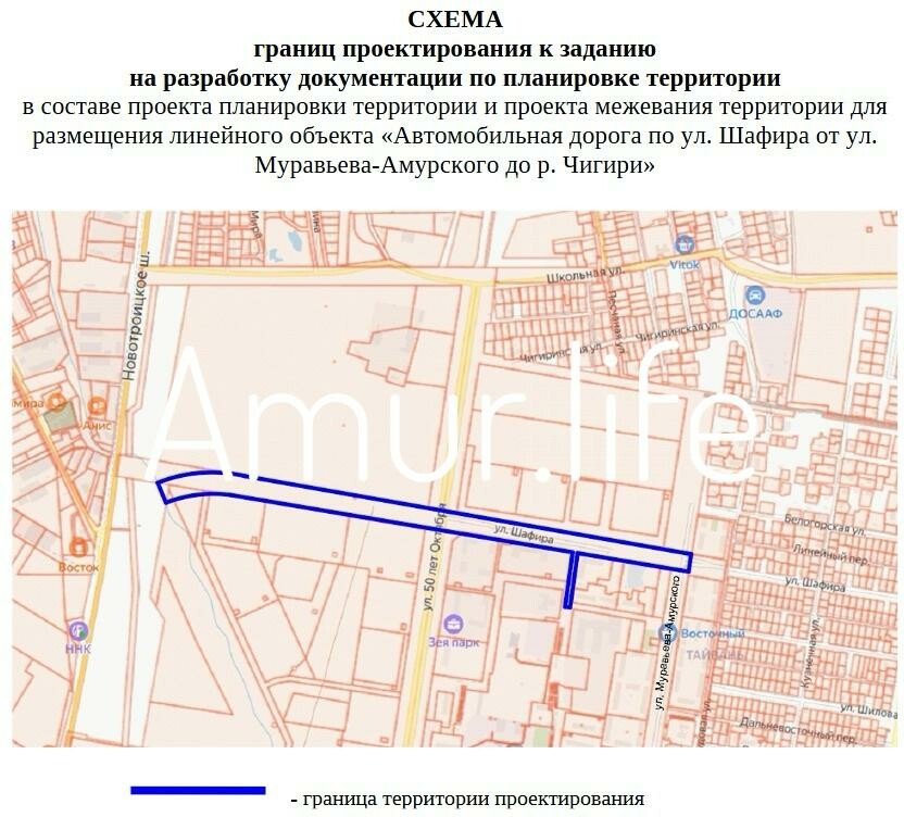 В Благовещенске объявлен аукцион на выбор подрядчика для строительства автомобильной дороги по улице Шафира. Новая магистраль соединит улицу Муравьева-Амурского с рекой Чигири.