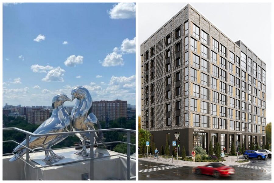 Новый дом привлекает внимание необычным арт-объектом – на крыше дома поселились два голубя хромированного цвета – своего рода олицетворение жилого комплекса «Ты и я». Эту скульптурную группу высотой около двух метров создавали по заказу застройщика. Возможно, будет принято решение «приземлить» птиц на землю – тогда их переместят во двор дома, и арт-объект станет популярным местом для фото и символом ЖК.