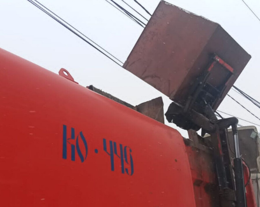 В Зее на переулке Жуковском водителям приходится ювелирно управлять погрузкой мусора из-за риска для жизни. Над дорогой провисли телефонные кабели и электропровода с линейным напряжением в 380 Вольт.