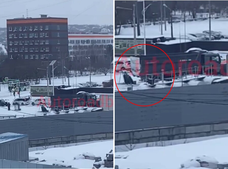 На кадрах видно, что бензоколонка накренилась. Очевидцы переживают за безопасность в близлежащей зоне.