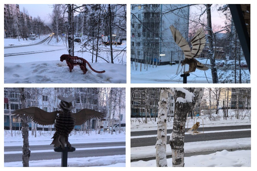 В воскресенье в Тынде стало больше необычных жителей. Это орел, тигр и маленький воробей. Причем местом их жительства стала недавно отреставрированная улица Школьная. Ее выбрал местный Левша – тындинский умелец Константин Швец.