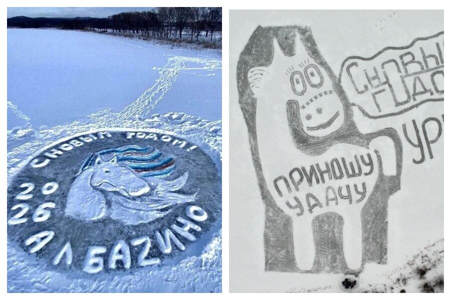 Еще об одном ледовом чуде рассказали в администрации Тындинского округа. В субботу, 22 ноября, команда активистов из Уркана под руководством Марии Бондаренко – педагога, фотоблогера, поэтессы и ледового художника – создала 47-метровую ледовую открытку, на которой также изображен символ 2026 года – лошадь, а точнее, конь с добрыми, наивными глазами.