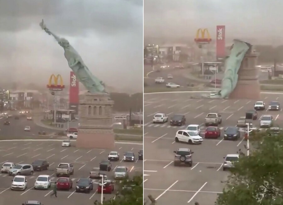 Копия статуи Свободы рухнула на парковку от сильного ветра в Бразилии. «Крушение демократии» произошло на фоне McDonald’s.