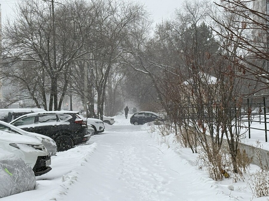 На регион обрушился глубокий циклон. В ближайшие сутки снегопад продолжится.