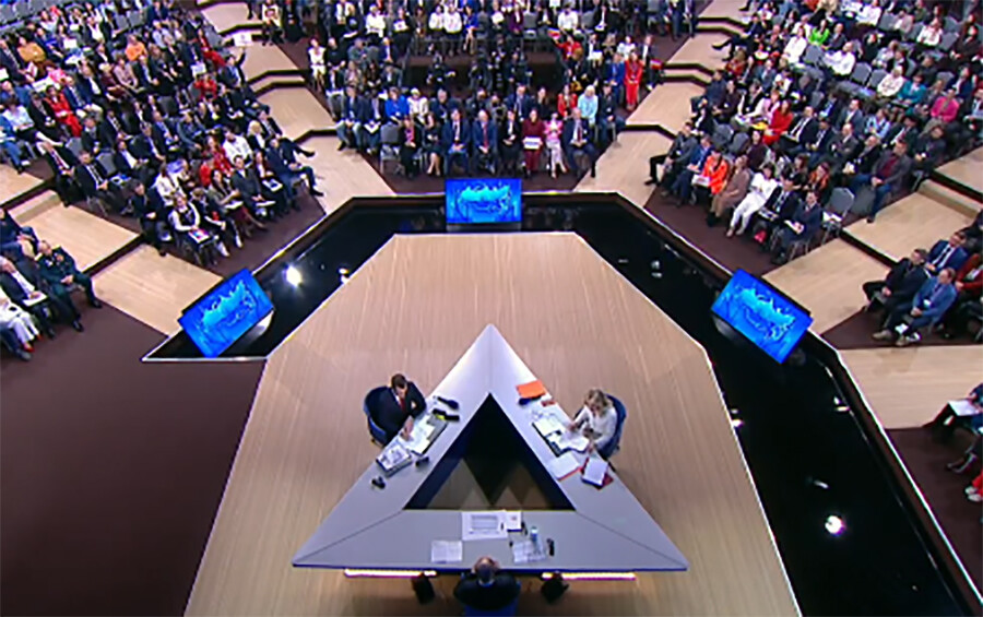 Пресс-конференция, совмещенная с прямой линией прошла 19 декабря в Гостином дворе Москвы. В этом году она длилась 4 часа 27 минут, сообщает РБК.