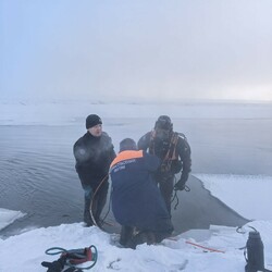 Когда машину при помощи КамАЗа подтащили к краю полыньи, водолаз Станислав Соломахин спустился и вытащил из салона машины тело ребенка.
