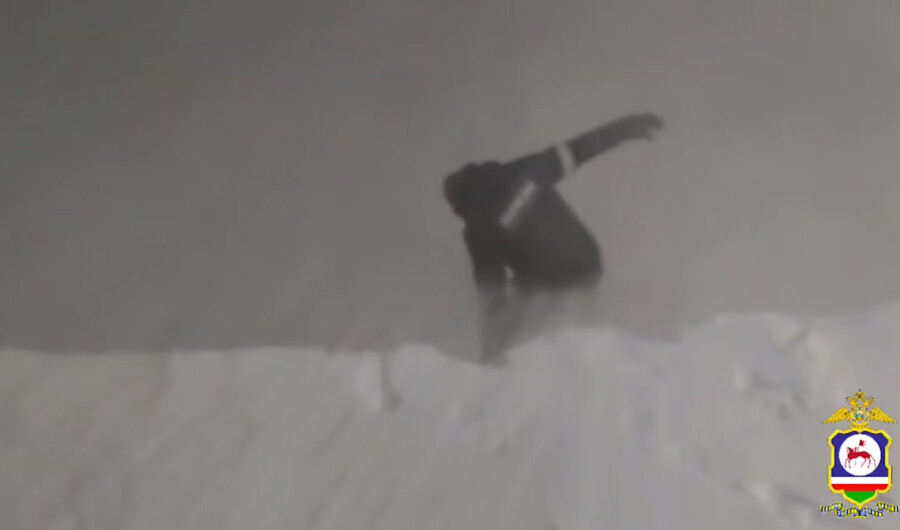 Двое товарищей были вынуждены пешком отправиться за помощью — их обнаружили коммунальщики неподалеку от местного аэропорта. Как утверждали мужчины, их 20-летний друг, скорее всего, погиб. Но полиция не теряла надежды и времени — несмотря на нулевую видимость поиски начались сразу. На кадрах — один из участников операции пробирается сквозь сильнейшую метель и горы снега.