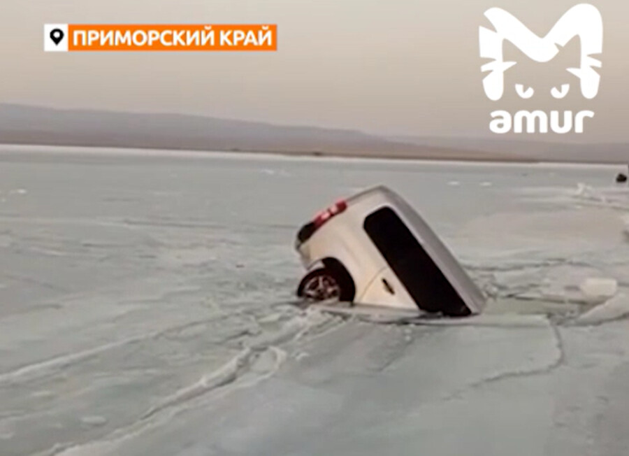Сразу три авто рыбаков ушли под воду в Приморье. Ранее рыболовов предупреждали о том, что лед не крепкий, однако это не остановило желающих поймать улов.