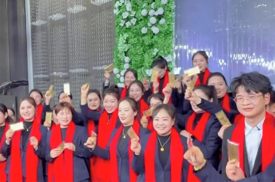 Владелец ювелирных магазинов в восточной провинции Китая подарил каждому своему сотруднику слитки золота весом один грамм со своей подписью. Это произошло на корпоративе, сообщает РИА Новости со ссылкой на гонконгскую газету Standard.
