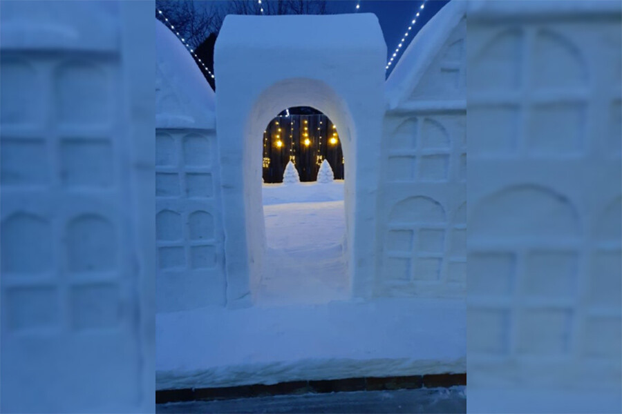 Строительство началось 10 декабря. Работали не спеша, по несколько часов в день, выбирая моменты потепления. Снег со двора не вывозили, а собирали в одном месте — он и стал главным материалом.