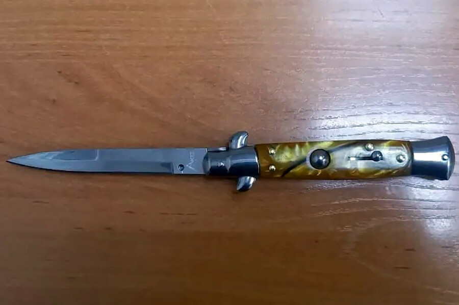 На вопрос судебного пристава о имеющихся запрещенных к проносу предметов мужчина ответил отрицательно. Но сотрудники, проверяя металлодетектором его верхнюю одежду, обнаружили в кармане штанов складной нож.