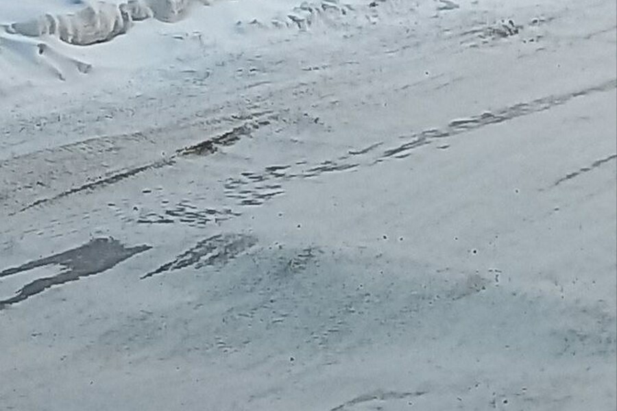 Жители улицы Центральной на Плодопитомнике жалуются на состояние дороги. В частности, в этом месте после поворота с Игнатьевского шоссе начинается достаточно крутой подъем, который после осадков превратился с ледяную горку.