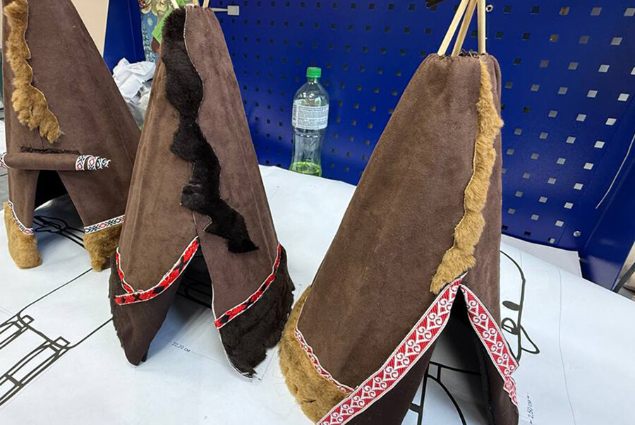Сегодня в производственных мастерских театра кипит работа над созданием уникальных кукол, декораций и специальной сценической одежды актеров. В швейном цехе специалисты трудятся над пошивом кухлянок — традиционной меховой одежды северных народов, которую артисты будут носить на сцене. Для каждой кухлянки дополнительно изготавливают штаны и сапоги. Всего планируется изготовить пять комплектов такой одежды, а также ряд элементов сценического оформления.