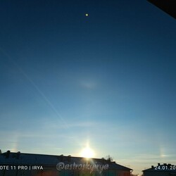Кроме этого, в небе можно было заметить радужные облака и солнечный столб, сообщает Telegram-канал Небо над нами.