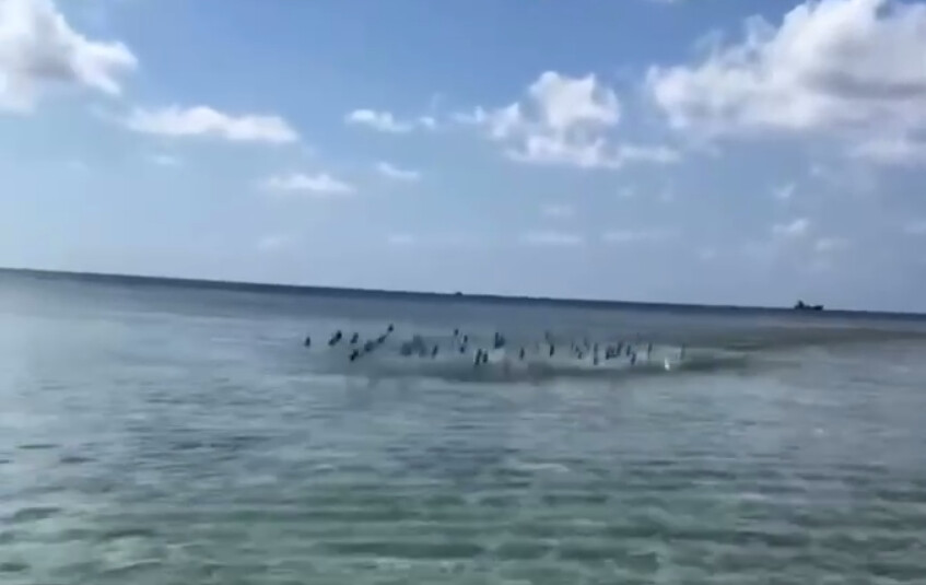 Косяк рыб внезапно атаковал русскую туристку на отдыхе на Мальдивах. Около полусотни особей ритмично выпрыгивали из воды и в два счета добрались до женщины.