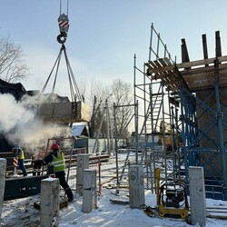 На сегодняшний день установлены 13 из 16 опор, смонтированы 10 из 12 пролетных строений. Железобетонные балки для двух оставшихся пролетов уже доставлены на площадку, их монтаж планируется весной. Параллельно ведется строительство подпорных стен: из 22 секций выполнено 16 фундаментов и 14 стенок.