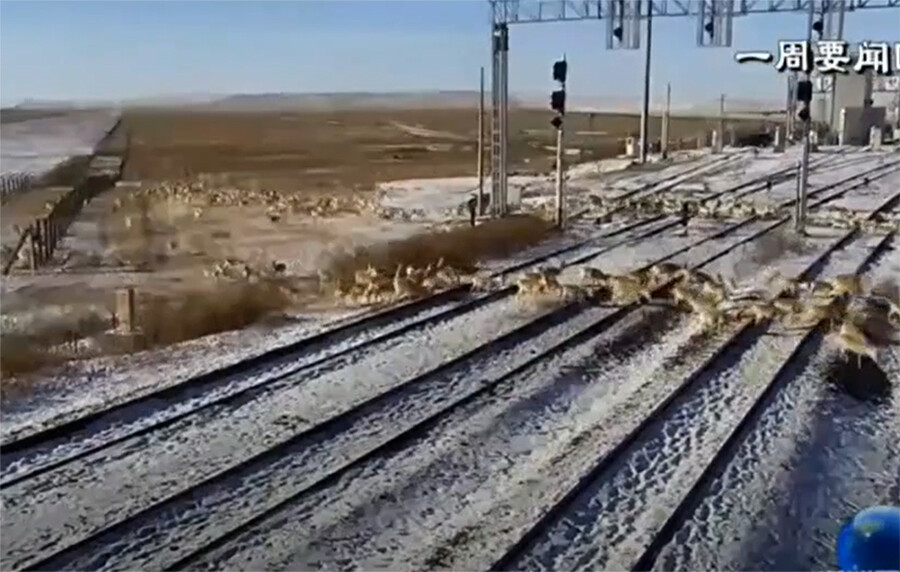 В управлении пограничного контроля Маньчжурии рассказали, что более 1 000 особей сбились в стадо, которое кочует вдоль колючей проволоки, отделяющей территорию КНР от территории России. Монгольские дзерены неоднократно пересекали железнодорожное полотно, по которому довольно часто курсируют грузовые поезда. Животные пасутся на китайско-российской границе, недалеко от железнодорожной ветки.