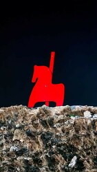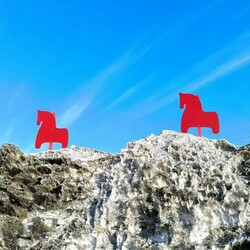 Творческая группа города-галереи «Сигналы» решила нестандартно поздравить жителей Поднебесной с Праздником весны. На масштабном арт-объекте «Великая белая стена» размещен табун из восьми огненных красных лошадей, которых установили на навалах снега у края парковки.