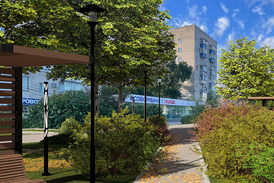После благоустройства территория перестанет быть исключительно транзитной. В разных ее уголках появятся места для отдыха и встреч. Так, жители и гости города смогут проводить время на качелях и скамейках под навесами. Кроме того, здесь обустроят более камерные зоны — лавочки установят в карманах, отделенных от оживленных транзитных зон живой изгородью и другими растениями.