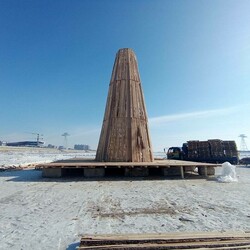 Гигантский арт-объект высотой с пятиэтажный дом начали сооружать 12 февраля. Над ним трудятся 4 человека во главе с Сергеем Генераловым – членом Союза художников России. Сам он из Хабаровска, но по работе часто приезжает в Благовещенск. В частности, он 8 лет принимал участие в сооружении снежного городка на площади амурской столицы. Кроме того, Сергей принимал участие в фестивале снега и льда в Харбине – делал там фигуры. Есть у него и опыт сооружения деревянных фигур, но, как он сам признается, такой огромный объект делает впервые. Также впервые его работа практически сразу будет уничтожена.