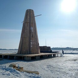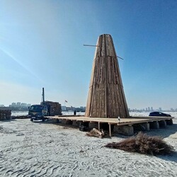 В амурской столице завершается процесс сооружения огромного чучела Масленицы на льду Амура между Благовещенском и Хэйхэ. Арт-объект уже возвышается на 12 метров – это три яруса будущей Масленицы.