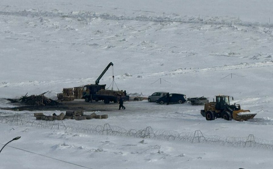 На пограничной реке сфотографировали технику.