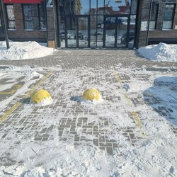 Сначала застройщик, как это и предполагалось изначально, обустроил парковочные места для инвалидов. Но летом 2025 года дорожные знаки почему-то были демонтированы. Определить, где места для людей с ограниченными возможностями, стало возможно лишь по разметке на дороге, которая зимой чаще скрыта под снегом.