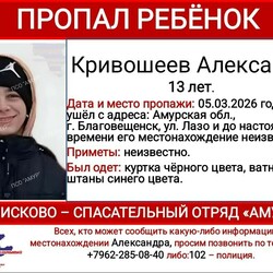 Александр Кривошеев, 13 лет, и Руслан Широков, 13 лет, 5 марта ушли из дома по адресу: Благовещенск, улица Лазо. До настоящего времени их местонахождение неизвестно.