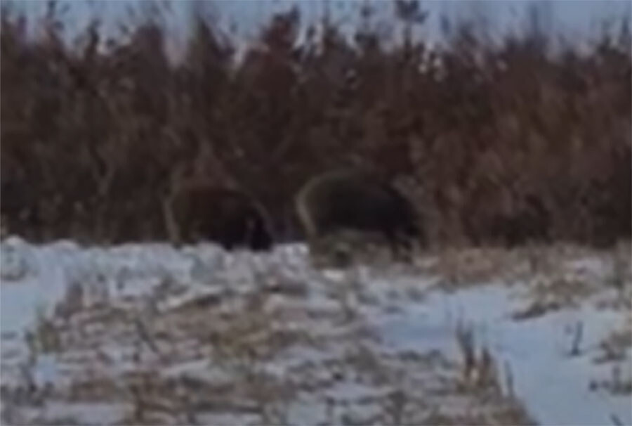 В Михайловском округе Приамурья кабаны нашли прекрасное кукурузное поле, с которого ветром сдуло большую часть снега. Это стало настоящим счастьем для семейства диких хрюшек.