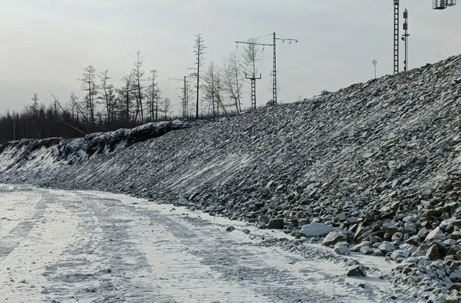 Высота бермы от берега Нюкжи до верхнего строения пути доходит до 14 метров — как 5-этажный дом. Поэтому механизаторы устраивают несколько полок из грунта. Такая конструкция обеспечит надежность насыпи. Крупный камень на откосах также будет выполнять функцию охлаждающей наброски и сохранит вечную мерзлоту в основании земляного полотна, сообщает пресс-служба ГК Нацпроектстрой.
