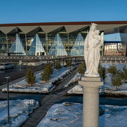 Уже полностью готова большая парковка на 600 машиномест и обустроен сквер напротив здания терминала.