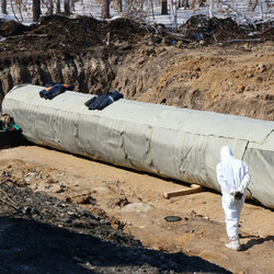 Благодаря реконструкции по нацпроекту «Инфраструктура для жизни» устанавливают гофрированные оцинкованные трубы: они долговечные, значит, прослужат дольше. Также новые трубы больше диаметром почти в два раза: старые – от 0,8 до метра, новые – полтора метра.
