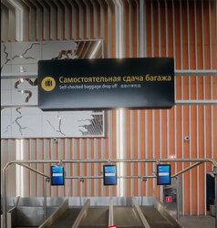 Сначала зрителей приводят в просторный зал регистрации, где в том числе есть стойки самостоятельной регистрации на рейс, и в деталях рассказывают, как ими пользоваться.