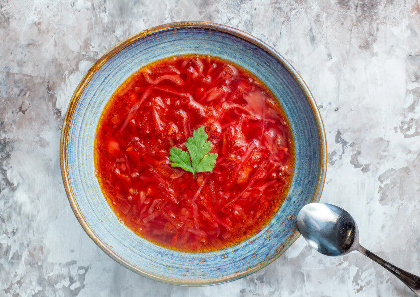Борщ рекомендуется подавать со сметаной, салом, чесноком и зеленью, пампушками или ватрушками с несладкой начинкой. Об этом говорится в проекте ГОСТа традиционной русской кухни.