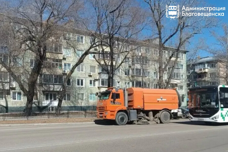 На улицах Благовещенска с прошлой недели работает новая спецтехника – пылесос-регенератор. Машина очищает прилотковую часть дорог, парковки и автобусные остановки.