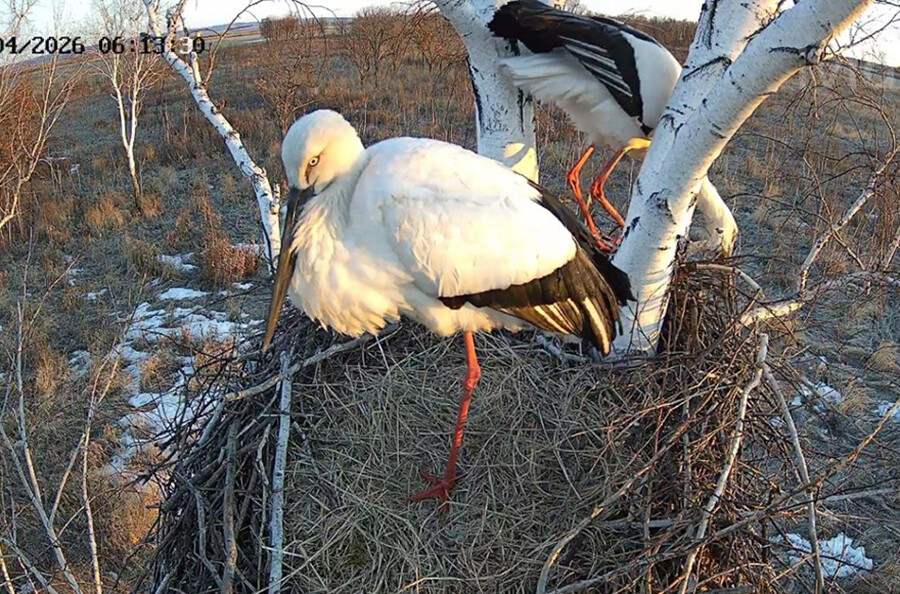 В день установки камеры аистов в гнезде не было, яйца в гнезде тоже отсутствовали. Но было видно, что гнездо уже обустраивается – лежат свежие ветки и сухая солома. Хозяева-аисты появились только на следующее утро и продолжили ремонт и обустройство жилища. Скоро должно появиться первое яйцо, считает ученый.