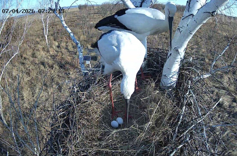 Аисты в Березовском заказнике Амурской области обзаводятся потомством. 6 апреля в 22:34 самка снесла второе яйцо, сообщил амурский ученый Антон Сасин. Первое было замечено 5 апреля.